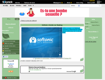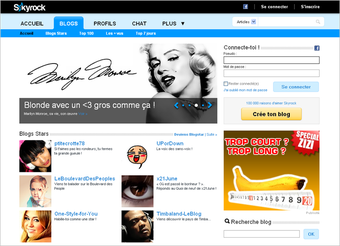 Skyblog s'appréhende aussi en tant que simple lecteur. Sur la page d'accueil des blogs Skyrock, vous pouvez trouver des thèmes par centres d'intérêt et consulter des pages sans forcément faire partie de la communauté. Les plus populaires sont facilement consultables en quelques clics, tout comme les profils utilisateurs les plus visités des dernières semaines.